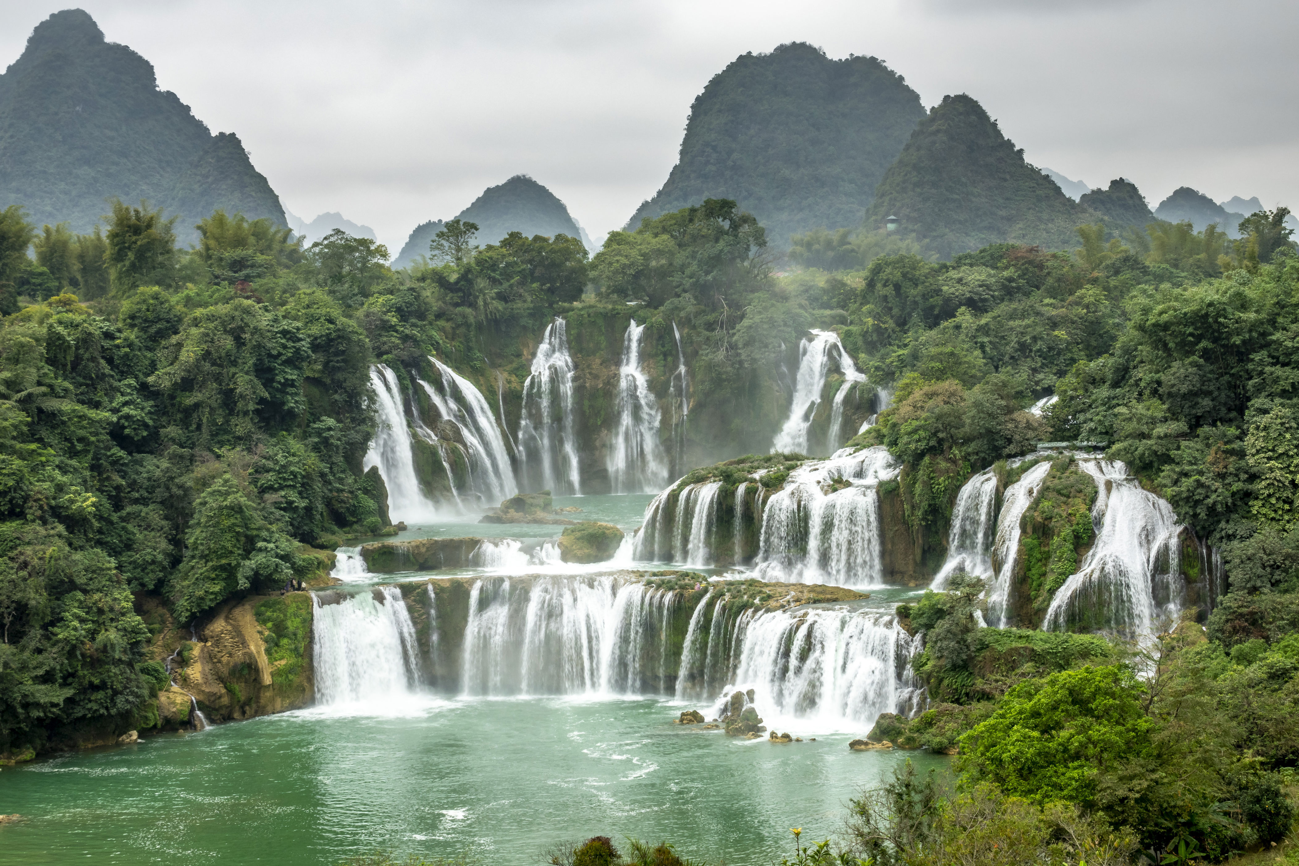 5、德天跨国瀑布德天瀑布横跨中国和越南,每年的6月-11月是瀑布的丰水期,景色也是最美的。这里奇山异水,风景秀美,登上观景台,看瀑布倾泻而下,就像一道水帘挂在悬崖上,近观十分震撼,感叹大自然的神奇。