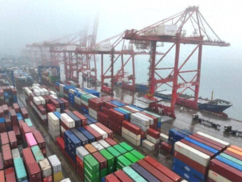 ▲2026年3月1日,在江苏省连云港港集装箱码头,货轮停在泊位装卸集装箱。图/IC photo