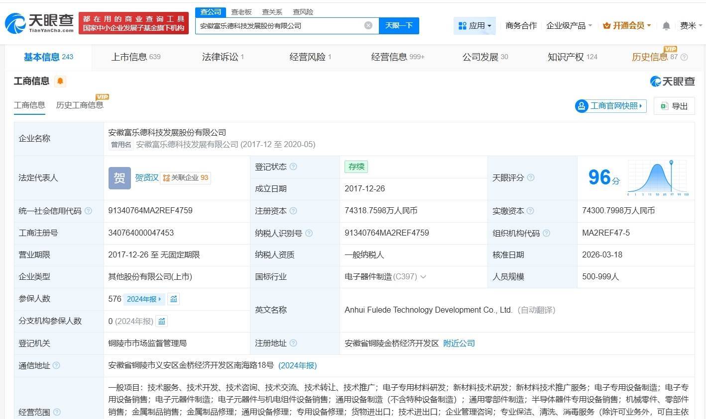 南方财经3月25日电,天眼查App显示,近日配资股票一览表最新公告,富乐德(301297)发生工商变更,注册资本由约3.4亿人民币增至约7.4亿人民币,增幅约120%。安徽富乐德科技发展股份有限公司成立于2017年12月,法定代表人为贺贤汉,经营范围包括电子专用材料研发、新材料技术研发、电子专用设备制造等,由上海申和投资有限公司、共青城兴橙东樱半导体产业投资合伙企业(有限合伙)、上海祖贞企业管理中心(有限合伙)等共同持股。