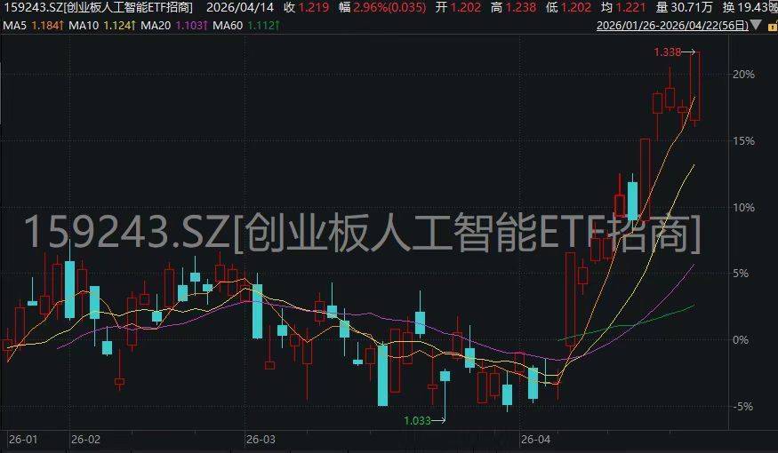 4月22日午后,AI算力板块强势爆发。截至13时21分,创业板人工智能ETF招商(159243)大涨3.25%。成分股表现炸裂——协创数据大涨15%,近7个交易日累计暴涨70%,软通动力、光库科技紧随其后,涨幅居前。